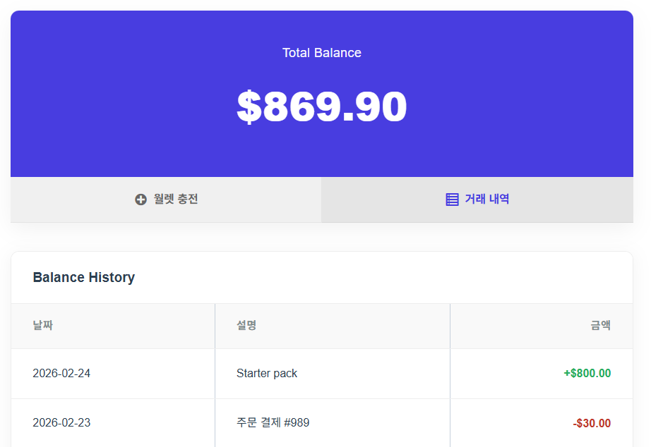 Two ways to pay: credit balance (pre-loaded in My Account > My Wallet, 1 credit = 1 USD) or direct payment by credit card (managed in My Account > Payment Methods). Credits don’t expire.